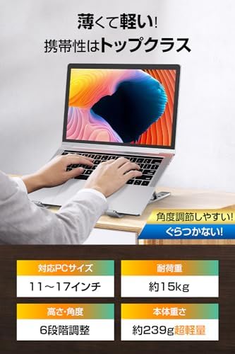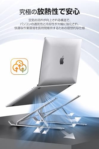 ✅【放熱対策・安定性優越】この ノートパソコンスタンド は、優れた放熱機能を備えており、長時間の使用でもノートパソコンの過熱を防ぎます。さらに、アップグレードされた合金材質で作られており、重いノートパソコンを支えても揺れることなく、作業中の安心感を提供する パソコンスタンド となります。 ✅【6段階角度調整・省スペース】この pcスタンド は6段階の角度調整が可能で、お好みに合わせて最適な視角を簡単に見つけられます。デスク上でのスペースを最大限に活用でき、 ノートpc スタンド で作業環境を整理整頓しやすくなります。 ✅【最大15kg耐重・安定性優越】 ノートパソコン スタンド は最大15kgまでの重量に耐えることができ、ほとんどのノートパソコンに適応します。アップグレードされた合金材質で作られており、耐久性も抜群で、長期間にわたって安定したサポートを保証します。 ✅【滑り止めデザイン・多機種対応】滑り止めの設計が施されており、デバイスの安全を確保する パソコン スタンド となり、MacBook、Acer、Lenovo、Sony、東芝など、最大15.6インチのノートパソコンに対応しています。17インチのノートPCには外付けキーボードの使用をお勧めします。 ✅【折り畳み式・タブレット対応】折り畳み式の設計な pc スタンド で、持ち運びや収納が非常に便利です。コンパクトに畳めるため、出張や移動の際にも手軽に携帯できます。さらに、iPadやSurface Pro、Samsungなどのタブレットにも対応可能です。