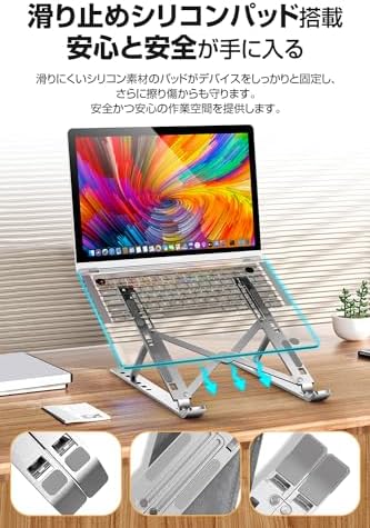 ノートパソコンスタンド 折りたたみ式 人間工学 6段階高さ&角度調整可能 パソコンスタンド ノートpc スタンド 腰痛&猫背&肩こり解消 滑り止め pcスタンド pc スタンド laptop stand 姿勢改善 スタンド PC mac対応