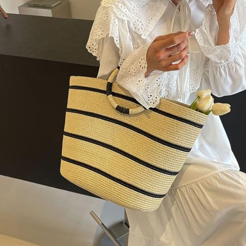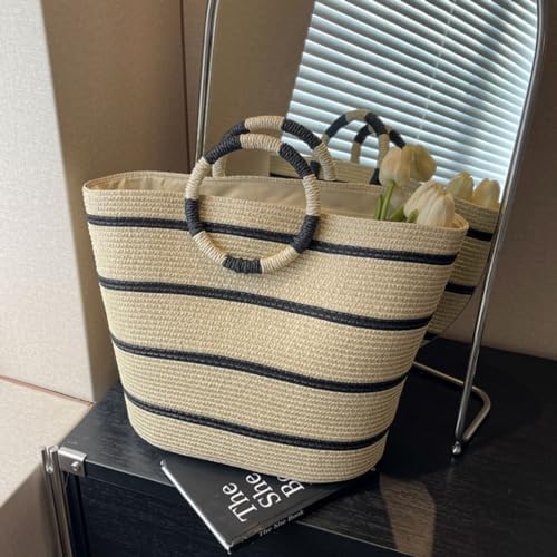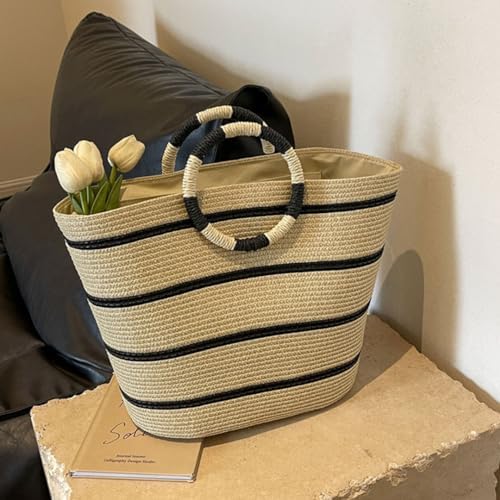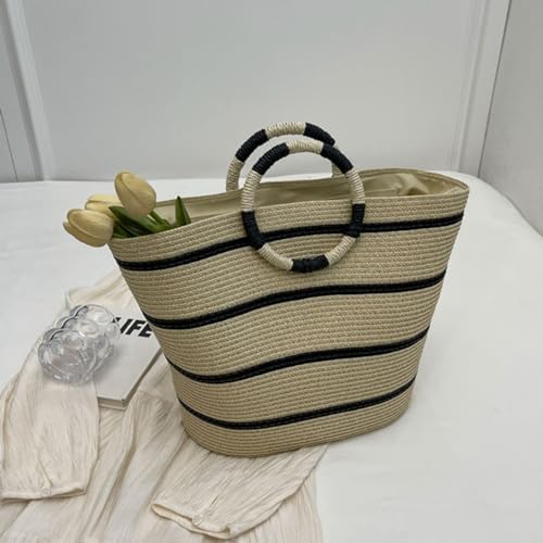[DARMAR TEMAR] 手提げバッグ バケツ型トートバッグ ストローバッグ レディース 大きい 手さげ カバン ハンドバッグ おしゃれ 軽量 海外旅行 女子 通勤 通学 誕生日プレゼント 可愛い 夏 カバン