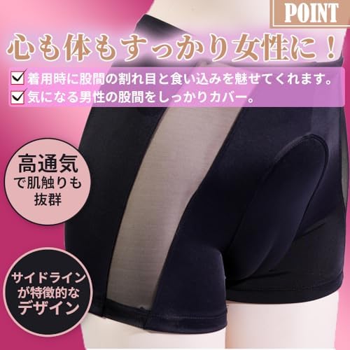 セクシーな股間を演出するパンツです。女性らしいボディラインを作ってくれます。 男性の股間をしっかりとカバー、着用時に股間の割れ目と食い込みを魅せてくれます。 カバーの部分は弾力性がいいスポンジになっております。 通気性にも優れている素材で、肌触りもよくなっております。スキニーパンツ等にラインがひびきにくいデザインになっております。 サイドラインが特徴で気になるムレも解消し、デザイン性にも優れています。 前をしっかりガードしてくれるので、女装コスプレに最適です。ハロウィン、イベント等活躍できるアイテムになっております。 下着も女性らしくコーディネートすることで、体も心も女性らしくなること間違いないです。 股間をしっかりカバーされたい方はワンサイズ小さめをお勧めしております。 - 144,608位ファッション ( ) - 53,312位