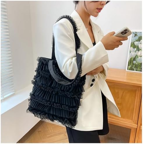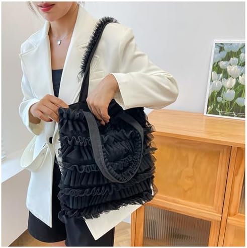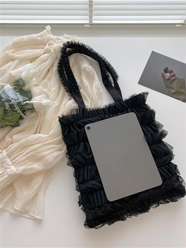 [LZHRD] トートバッグ レディース 大容量 a4 軽量 レース チュール フリル ショルダーバッグ ハンドバッグ スナップ バッグ 大きめ リゾート ティアード ギャザー 可愛い おしゃれ