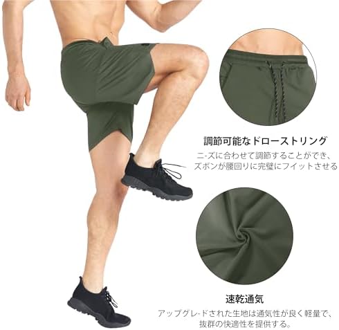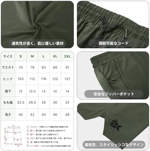 【軽快な吸汗速乾短パン】逆V ダブルの逆V字カットでデザインされたこのジム用ショートは、スタイリッシュなだけでなく、通気性を高め、速乾性を加え、より快適なランニング体験を提供する。 【快適なアウトドアパンツ】このスポーツショートには右側に隠しジッパーポケットが付いており、携帯電話や財布などの貴重品を入れるのに安全で便利な収納スペースを提供し、アウトドアスポーツに利便性を提供し、安心して自由に走ることを楽しんでください! 【調節可能なスポーツ ハーフパンツ】男性用スポーツショートは、フィット感のある伸縮性のあるウエストバンドでデザインされ、信頼性の高い高品質の素材を使用しています。 調節可能なドローストリング付きで、ワークアウトの強さに応じて伸縮性を自由に調節でき、摩擦を効果的に減らして快適性を高めます。 【多目的】シンプルなデザインで、一年中使用でき、バスケットボール、ランニングなどあらゆるスポーツやクラブ活動に使用できる。 合わせやすく、普段着、お出かけ、旅行、ご自宅、休日のお出かけに適しています。 【超弾性】生地は伸縮性に優れ、ソフトで快適な着用感。 柔軟なサポート力を発揮し、開脚やジャンプなど様々な動きに適応するため、運動中により自由で快適な着用感を味わうことができる。 - 6,895位ファッション ( ) - 17位