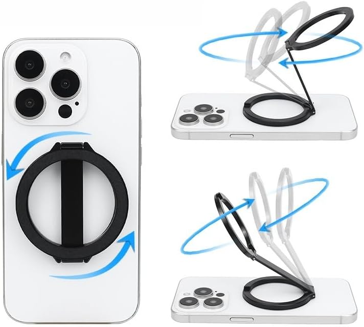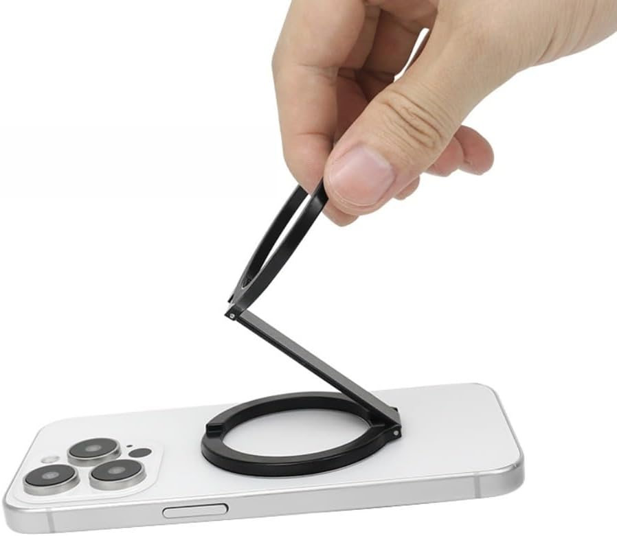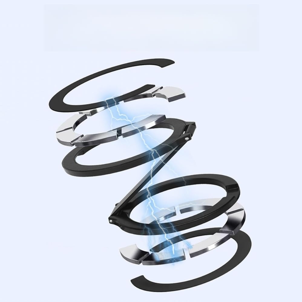 スマホリング MagSafe対応 両面に磁石 スマホスタンド マグセーフ対応 マグネット 車載マグネット スタンド機能 360°回転角度調整可能 携帯リング 取り外し可能 折りたたみリング 片手操作 耐久性 iPhoneシリー Android全機種対応(ブラック)