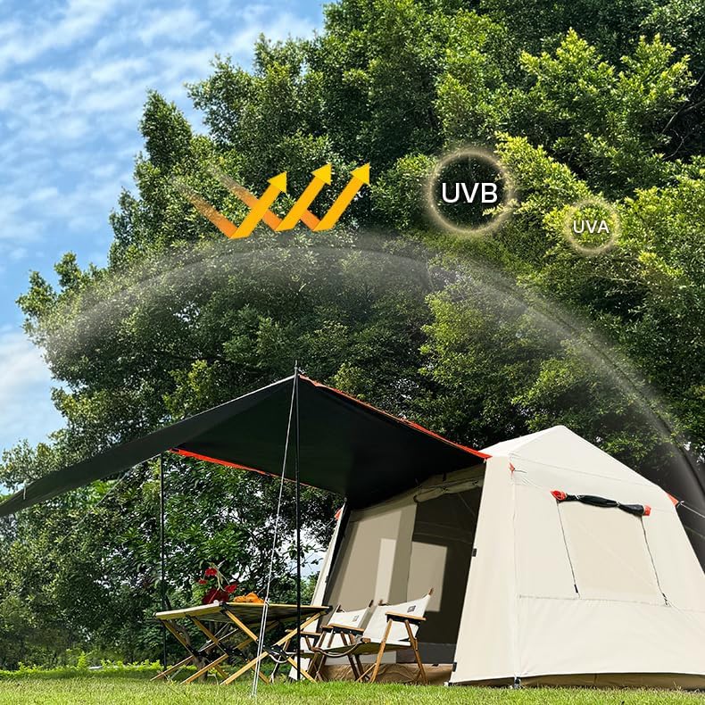 【Expandable Canopy】 Equipped with an expandable canopy, you can use it according to the scenario. Carry-on Awning Mode: Set the included awning to expand the space up to 6 square meters. The entire surface spreads up to 9 square meters of space and allows you to create 2 spacious and ventilated vestibules without worrying about the sun [New Sunscreen Fabric: Highly breathable and super waterproof] The screen door has 4 sides to prevent moisture buildup and condensation, and is breathable and prevents mosquitoes. Made with oxford fabric to prevent the elements and provide UV protection. Made of double layer waterproof nylon oxford fabric, the inner layer is treated with waterproof strip, and the bottom is 3000mm waterproof to provide more powerful waterproof performance. The outer tent uses 5 layers of UV protection that has a water pressure resistance of 78.6 inches (2,000 mm), and has excellent light shielding and heat insulation, providing the best UV protection. Effect (Suitable for Various Occasions) It can be used for various activities such as camping, picnics, fishing, mountain climbing, leisure, sports events, beach, festivals, flower viewing, fireworks festivals, and more. Tie down the four corners to make it rectangular and can be used as a tarpaulin or shade. Easy to assemble and storage bag, so even beginners can carry it with confidence 2 doorways and 2 observation windows: The design of the 2 doorways and 2 observation windows provides excellent visibility and breathability, and is made of ultra-high-density mesh, which provides excellent UV protection inside the tent. Insect 2 doorways for convenient air circulation. It can also be used as a front room by supporting your doorway Product Specifications: For 2 to 4 people: Unfolded size: 94.4 x 82.7 x 70.9 inches (240 x 210 x 180 cm); For 2 to 4 people: 6.75 kg); Storage size: 35.4 x 7.9 x 7.9 inches (90 x 20 x 20 cm); Accessories: Storage bag, account unit; Includes storage bag, 1 x 2 x 2 x 2 x 2 x 2 x ceiling lamp hooks